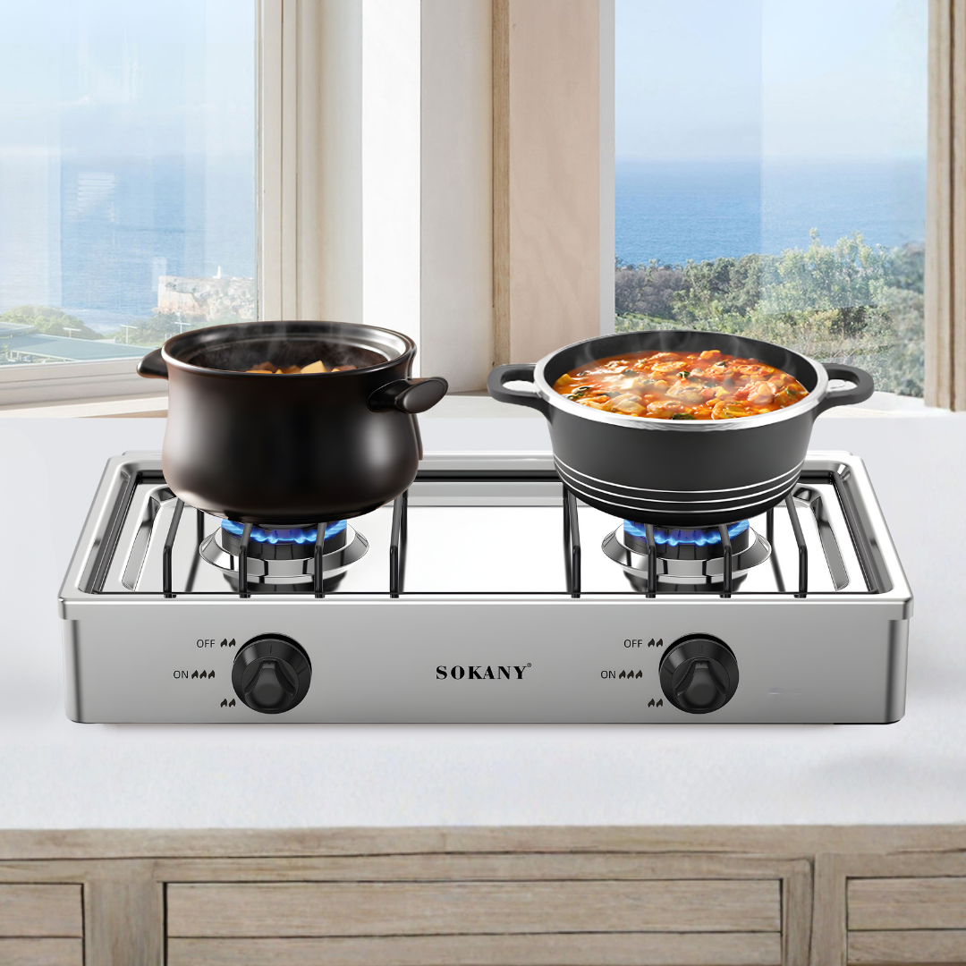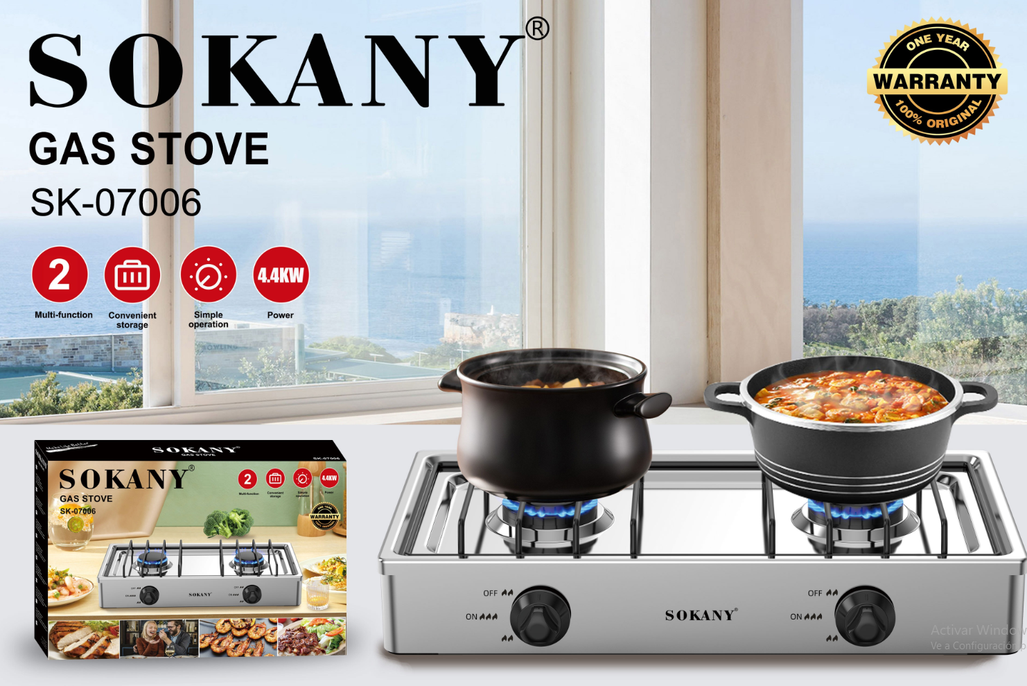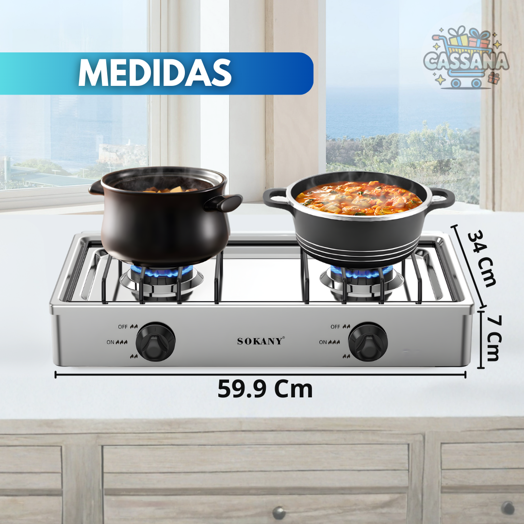 La Estufa de gas portátil Sokany 2 Hornillas combina potencia, diseño y practicidad para ofrecer una experiencia de cocción eficiente y moderna.